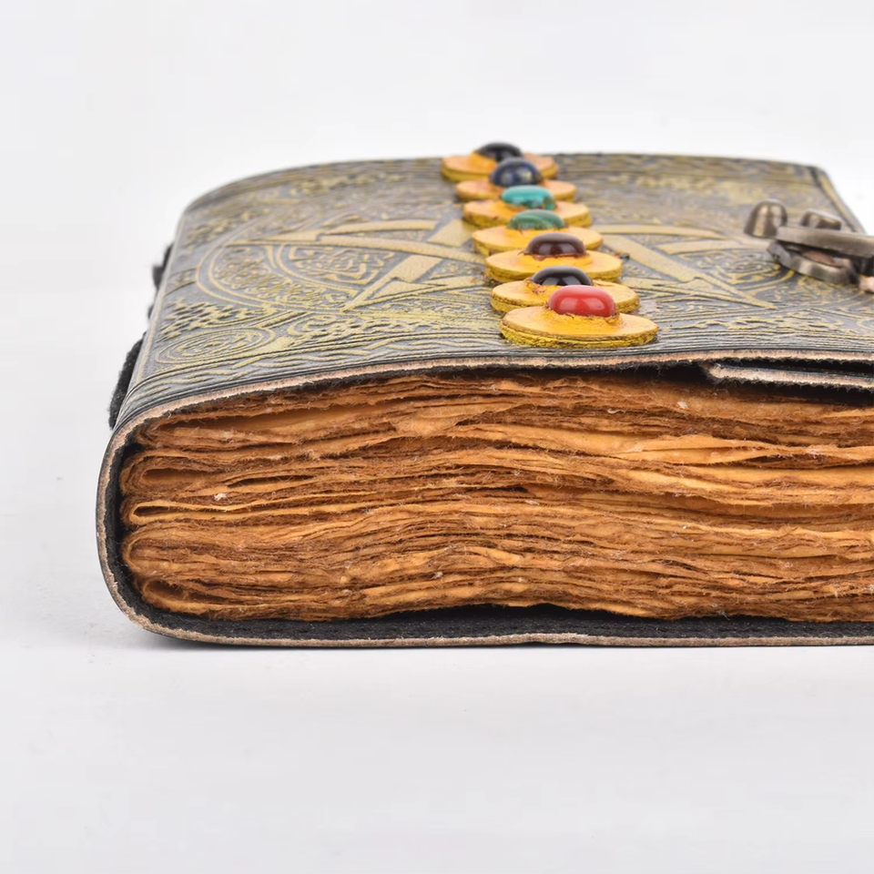 Journal en cuir de qualité export avec 7 pierres étoiles célestes | Carnet de notes vintage fait main avec motifs en relief | Cadeaux d'entreprise : Articles promotionnels | 2026