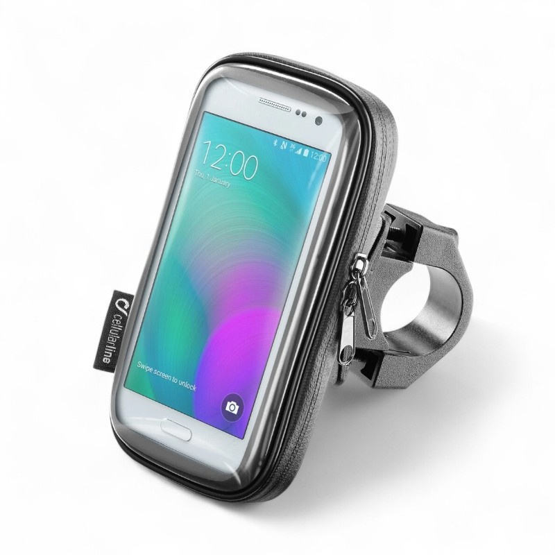 Support de smartphone pour moto Cellularline 4,5 pouces, durable, sûr, étanche, en cuir PU flexible, pour usage sportif, noir, fabriqué en Italie