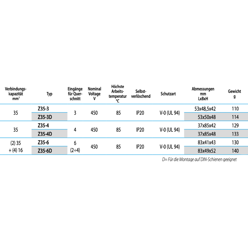 Catégorie Produit Z35-4D Cembre Bornes unipolaires 35mm ²