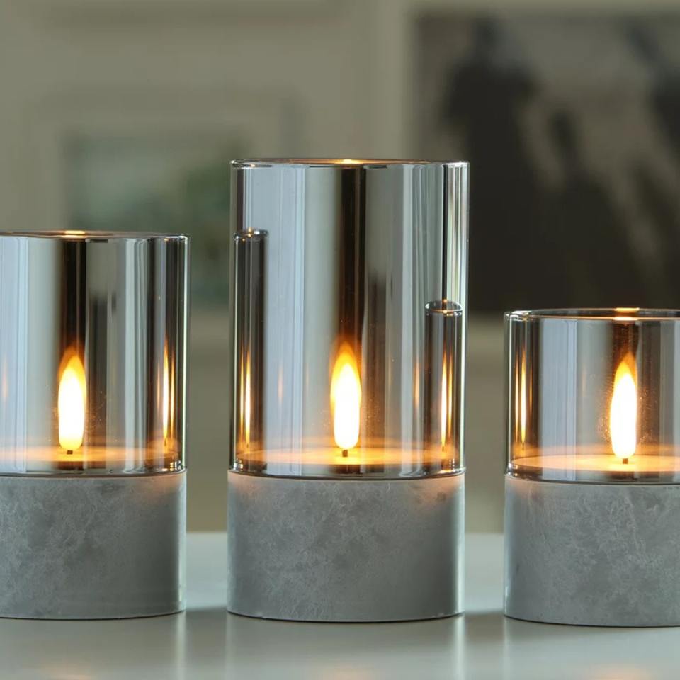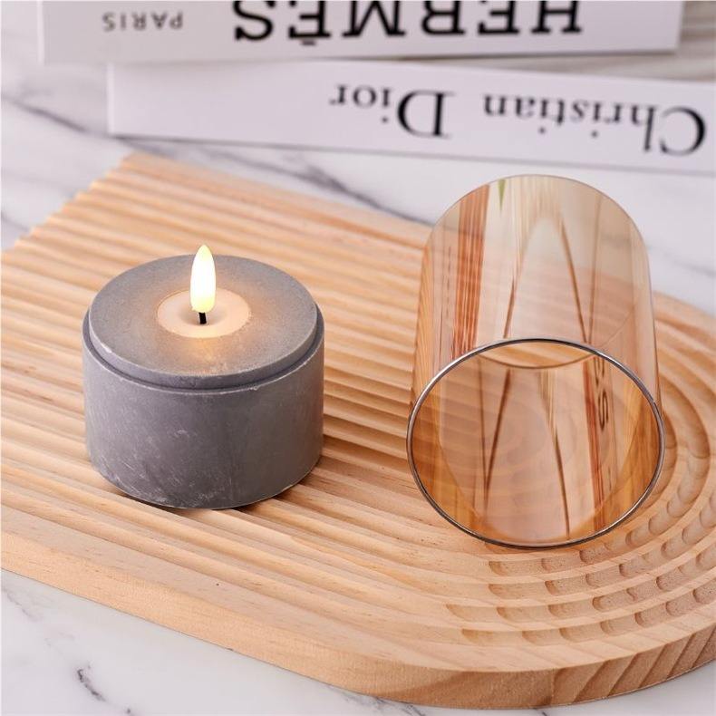 Bougie sans flamme en ciment LED avec flamme 3D et télécommande, bougies pilier à piles pour Halloween, décoration de la maison et des fêtes