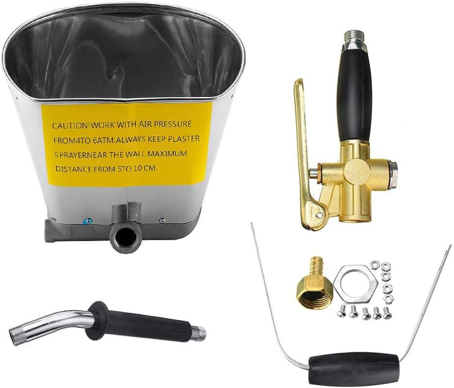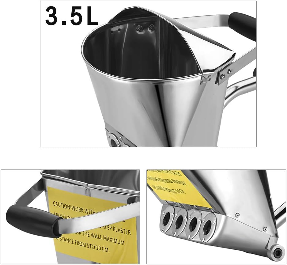 Pistolet pulvérisateur pneumatique pour mortier de ciment avec trémie en acier inoxydable 304, capacité de 3,5 L, outil de plâtrage à 4 jets pour la peinture murale
