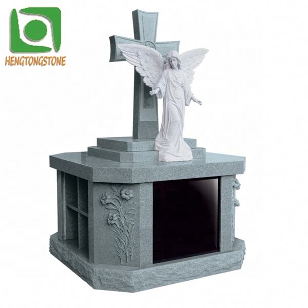 Cimetière en pierre sculptée à la main Croix de granit et ailes d'ouverture Statue d'ange Pierre tombale en pierre