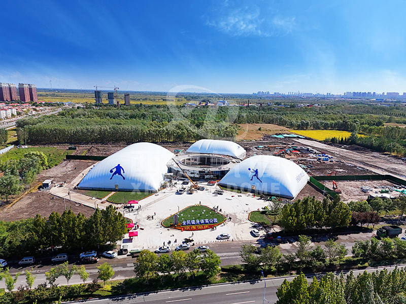 Salle de stade central Membrane architecturale Stade intérieur Dômes supportés par air Structure spatiale Dôme Football Basketball Sport XIDE