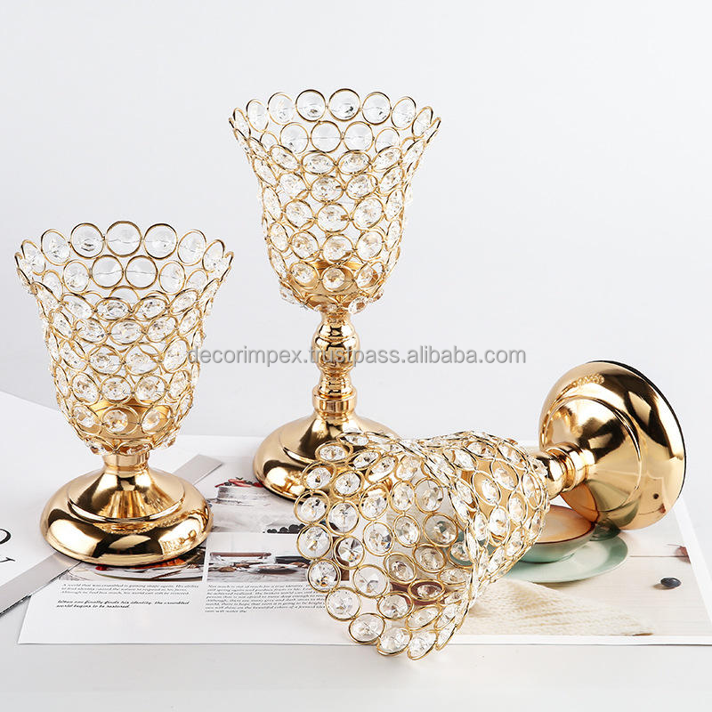 Centres de table Bougeoir moderne en cristal décoratif en métal doré pour table de mariage
