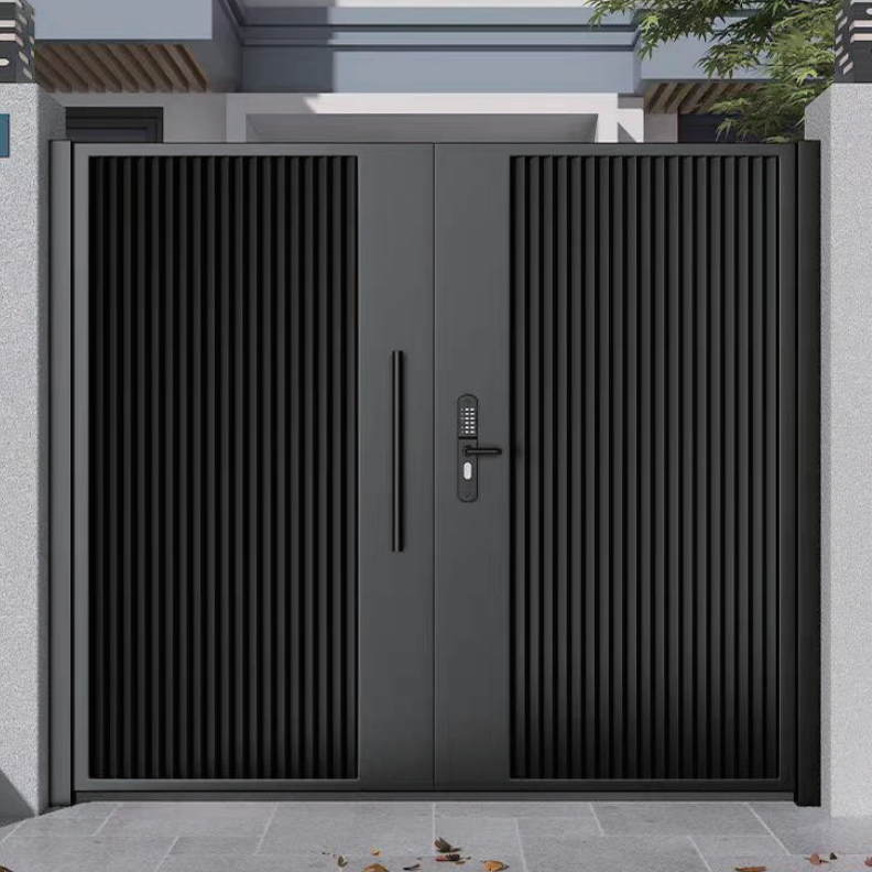 Porte battante en aluminium gris minimaliste, technologie durable, automatisation de la chaîne de production, fabrication chinoise de style d'Asie centrale