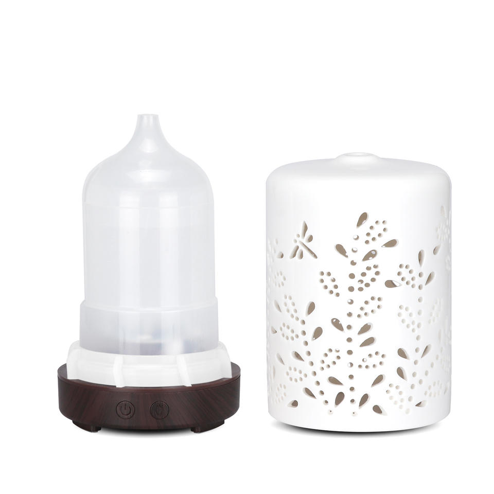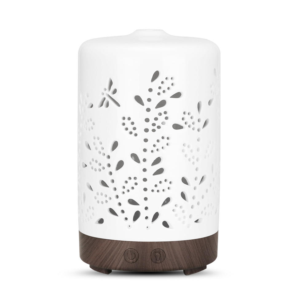 Diffuseur d'arômes en céramique 100 ml, humidificateur ultrasonique pour usage domestique avec base en bois