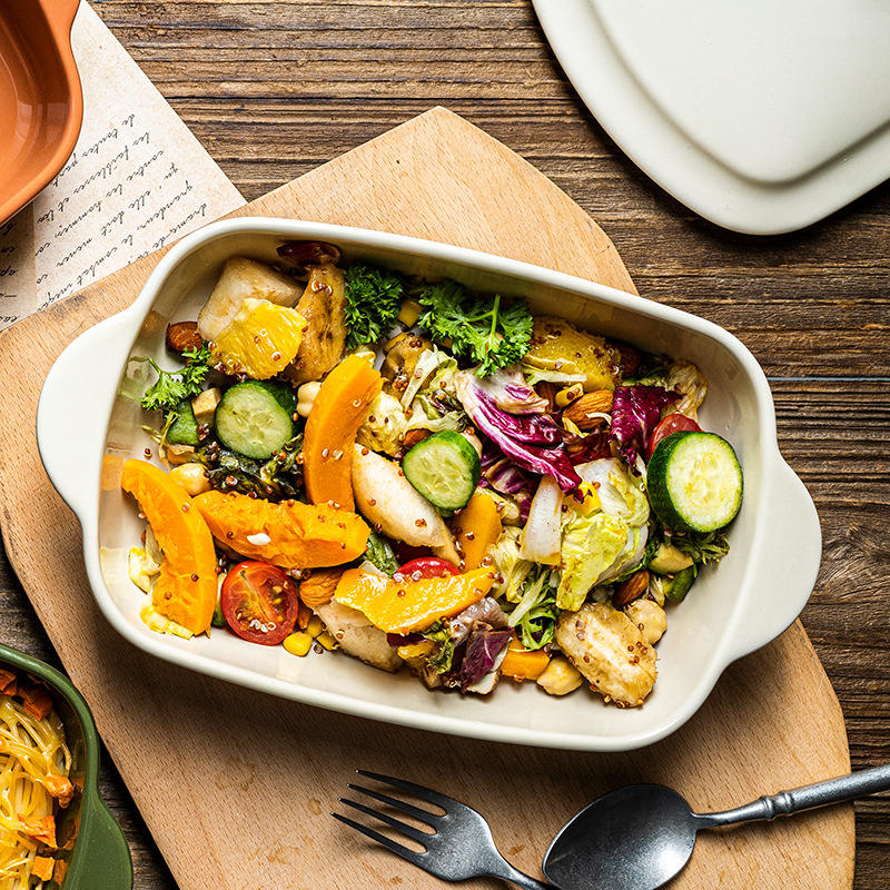 Plat de cuisson en céramique avec couvercle, motif dessin animé, forme ovale, peint à la main, plat à riz pour usage domestique, vente en gros