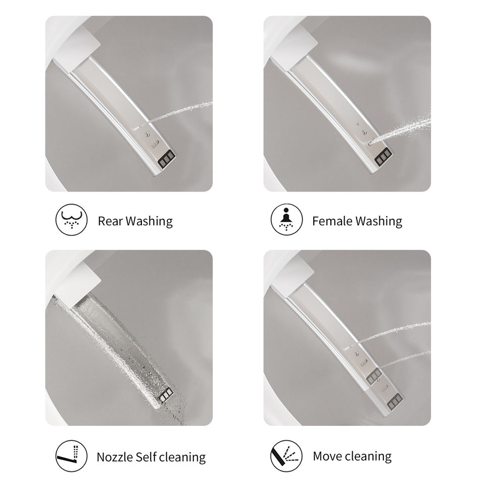 Fonction avancée:Nuit lumière, Réglage de la température de l'eau, Réglage de la pression de l'eau, Buse autonettoyante, Lave-femme, Sesiège de chauffage, Nettoyage de la buse mobile, Séchage à l'air chaud, Type de chauffage instantané, Pied capteur flush, Couverture automatique, Désodorisation automatique, Télécommande, Lavage de Fesses
