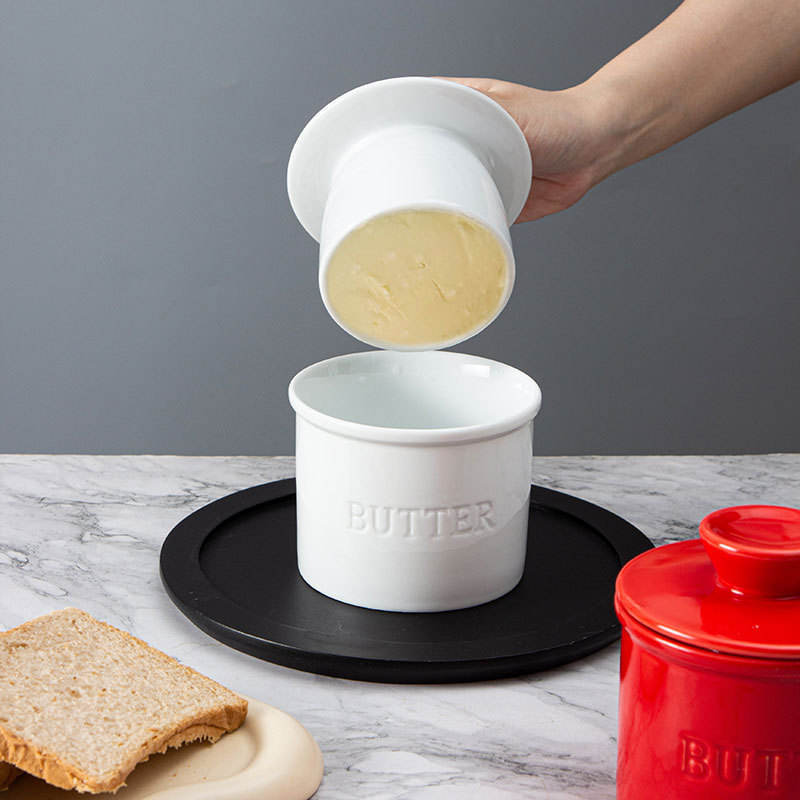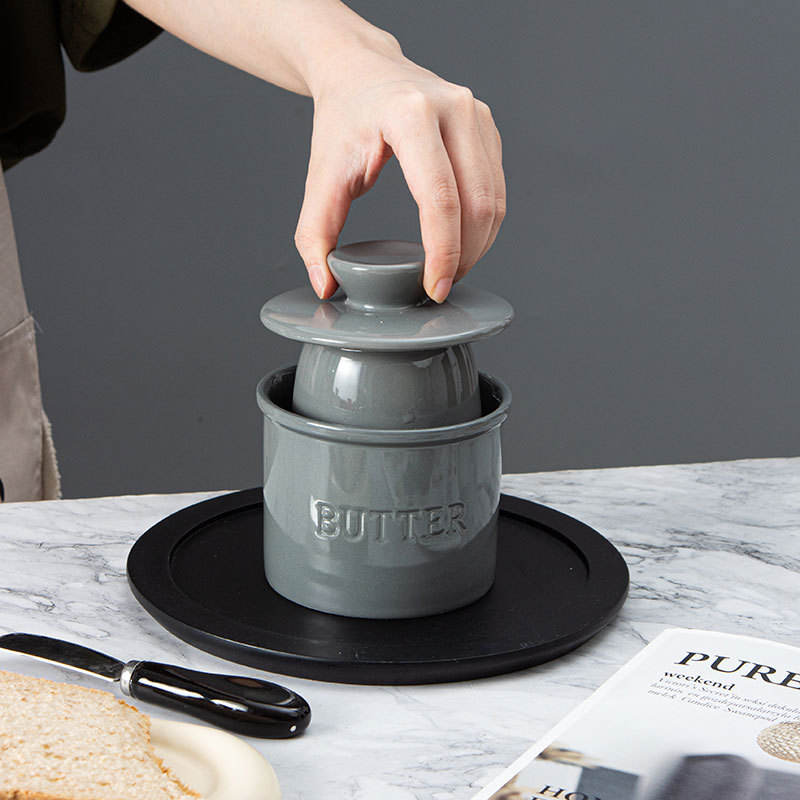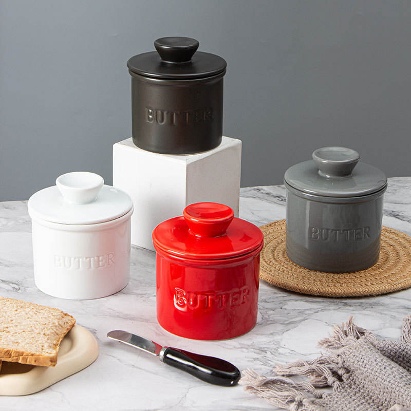 Pot à beurre en céramique avec couvercle, cylindre en poterie, récipient de rangement de cuisine, style européen, boîte à beurre transfrontalière