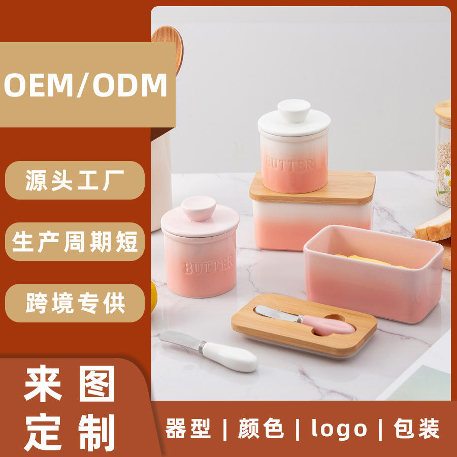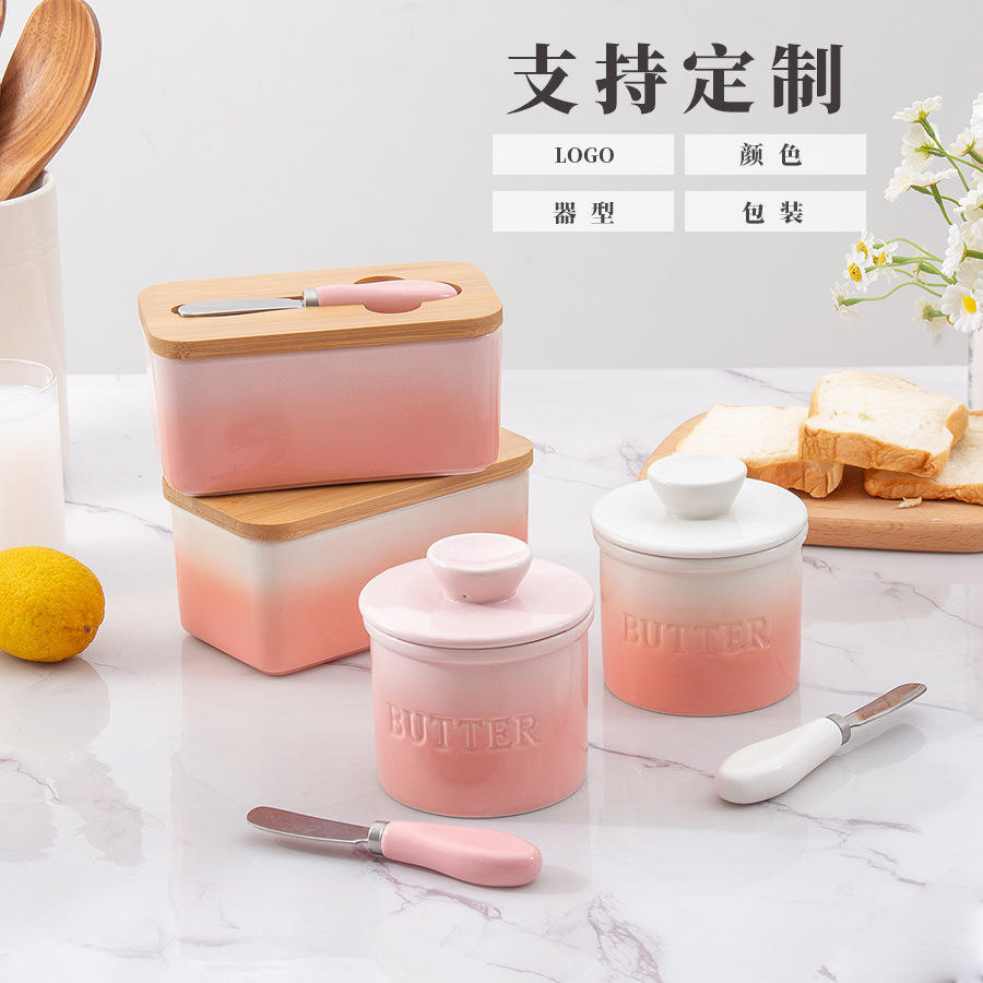 Pot à beurre en céramique avec couvercle, cylindre en porcelaine, hermétique, pour la cuisine et la maison