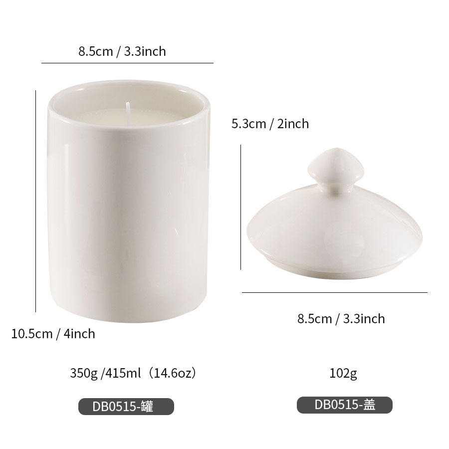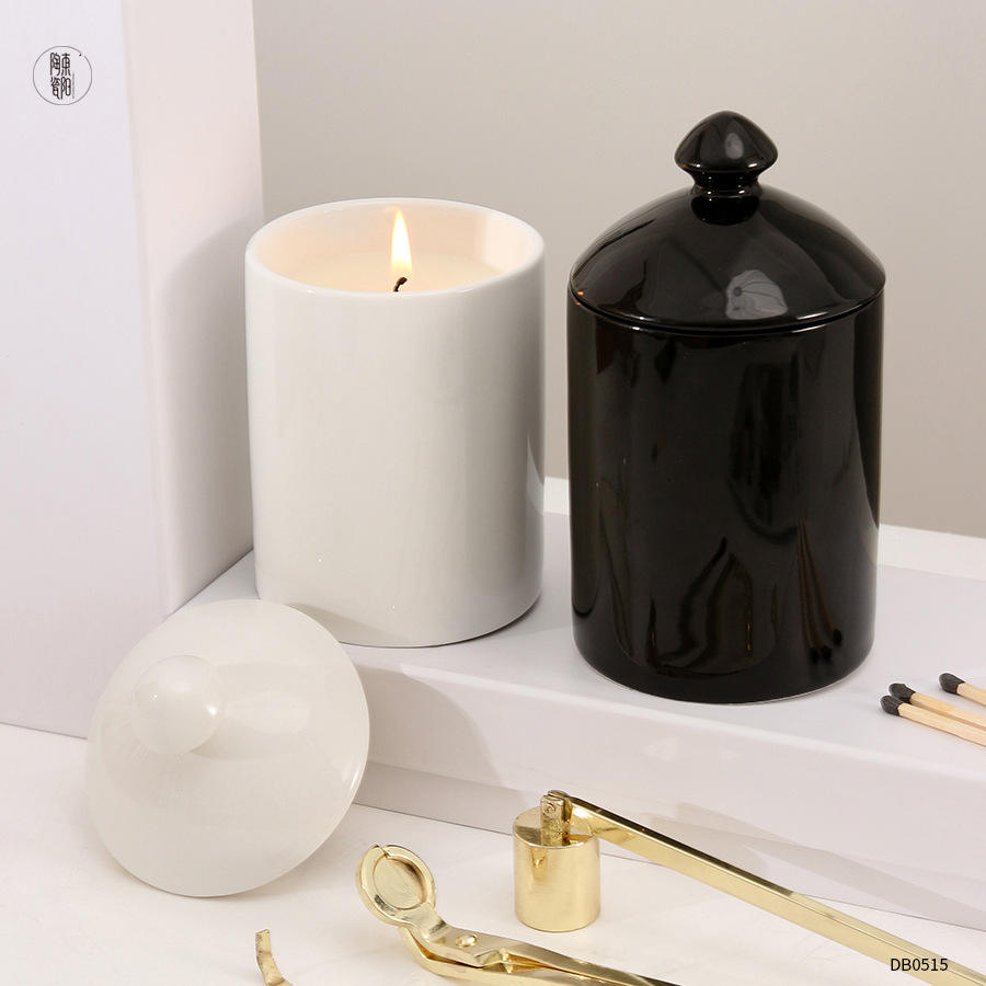 Pot à bougie en céramique avec couvercle, cylindrique, 14,6 oz, blanc, noir, vide, décoration d'intérieur DB0515
