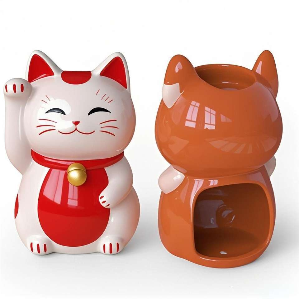 Diffuseur d'arômes en céramique pour chat-Brûleur d'huile en céramique de conception de chat porte-bonheur peint à la main, décor de parfum de maison zen