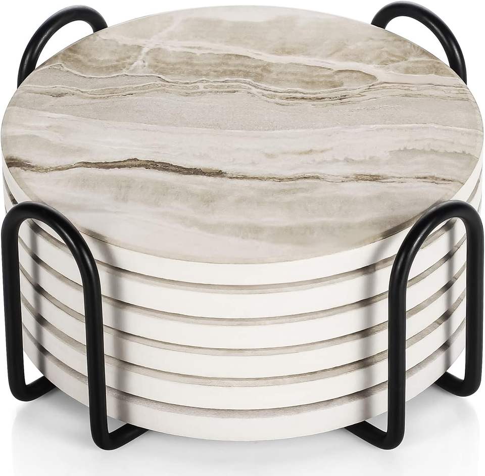 Sous-verres en céramique avec base en liège Sous-verres ronds avec énonciations humoristiques Décoration de salle de bar antidérapante Cadeau de pendaison de crémaillère