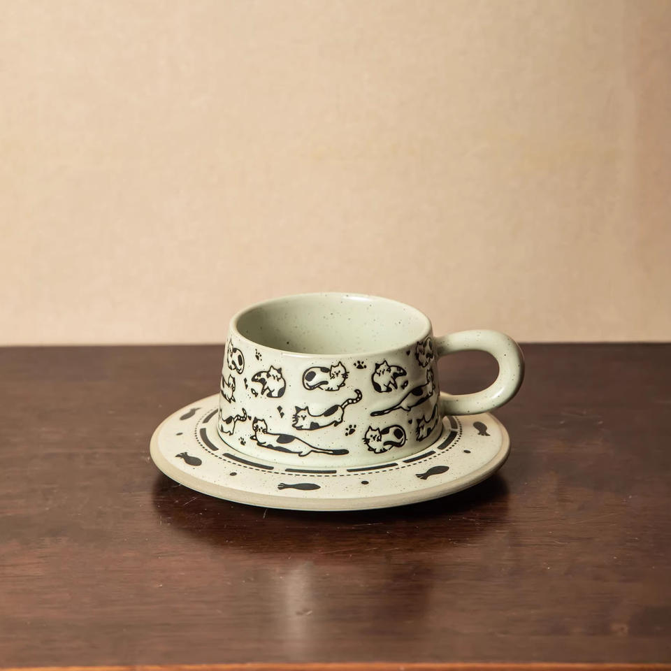 Ensemble tasse et soucoupe à café en céramique 250 ml avec motif chat pour la maison et le bureau