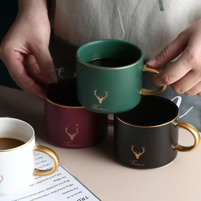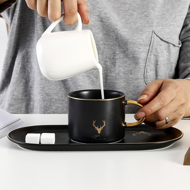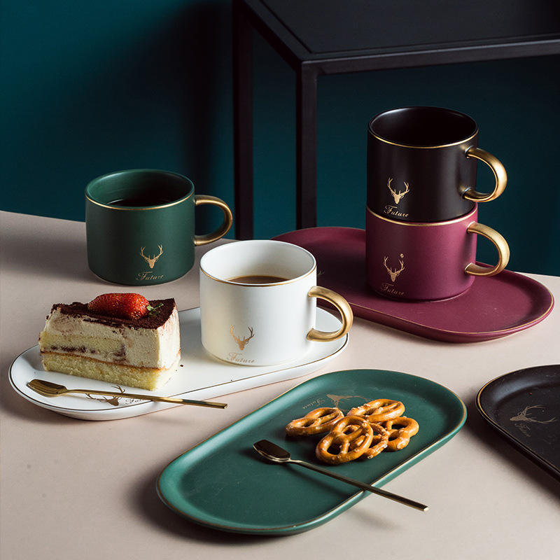 Ensemble tasse à café et soucoupe en céramique, tasse à thé anglaise en porcelaine avec soucoupe, cuillère dorée, passe au lave-vaisselle et au micro-ondes, pour expresso