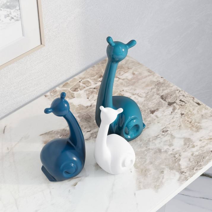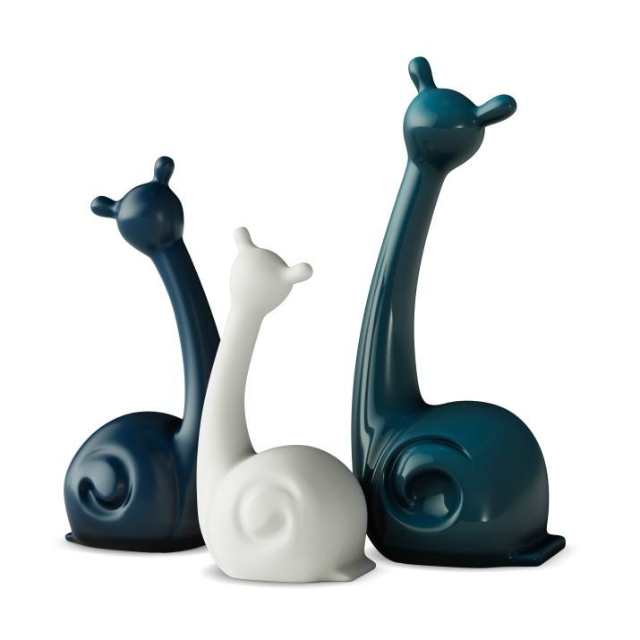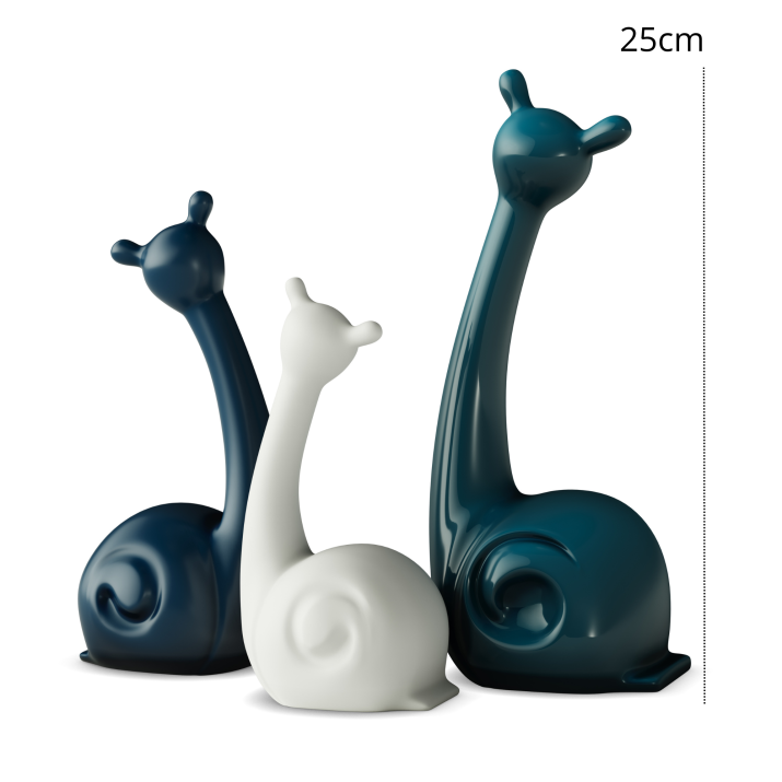 Objet décoratif contemporain en céramique de 25 cm, vert, bleu et blanc, en forme d'escargots, pour le salon