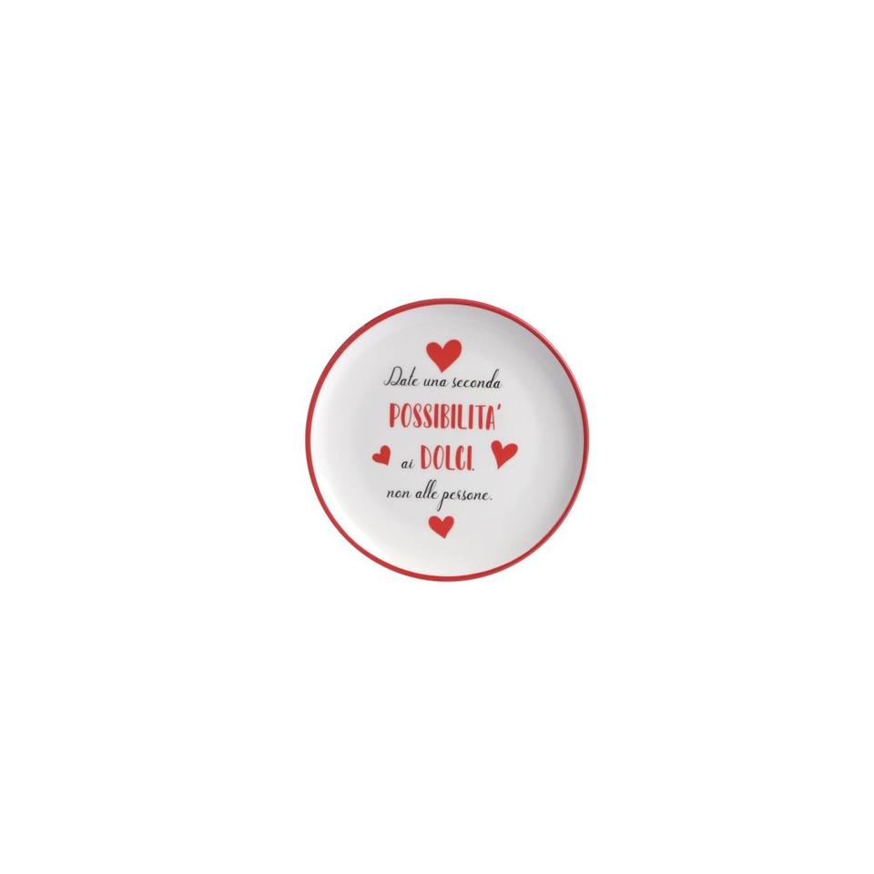 Assiette à dessert en céramique 28 cm avec citation inspirante et design de cœurs rouges