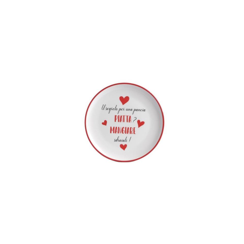 Assiette à dessert en céramique 28 cm avec citation italienne, design Cœur Rouge, pour manger allongé et favoriser une digestion saine