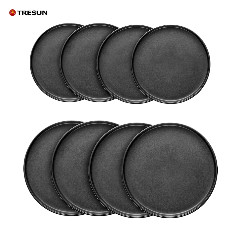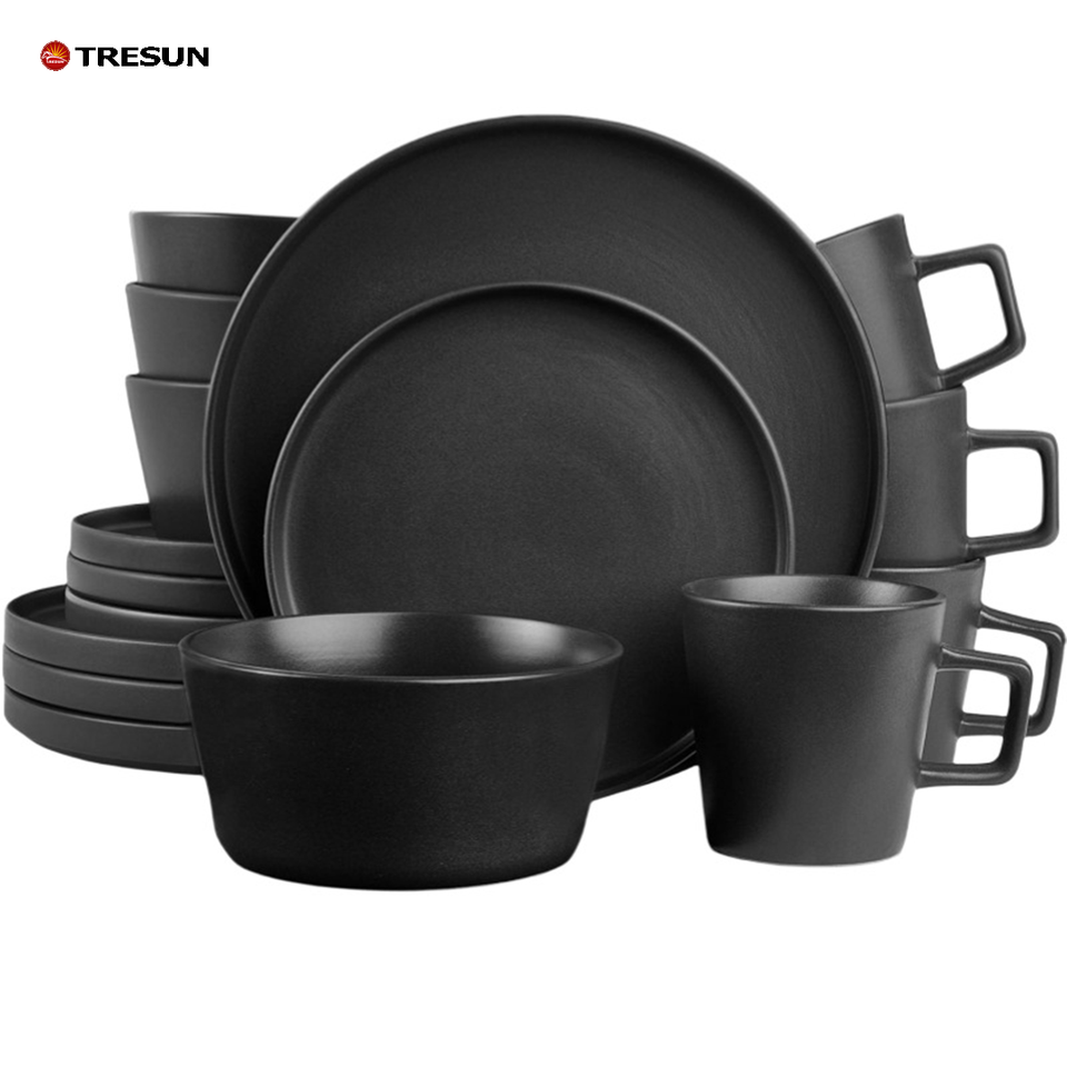 Fourniture d'usine de céramique ensemble de vaisselle en pierre émaillée noire brillante de 16 pièces ensembles de vaisselle ronds pour 4 personnes