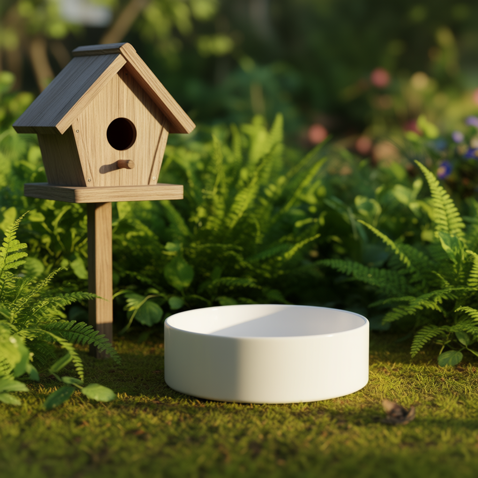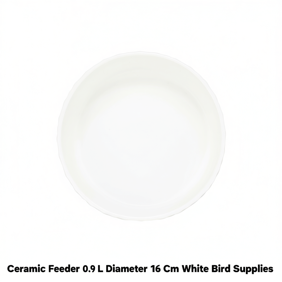 Mangeoire en céramique 0,9 L diamètre 16 cm blanche pour oiseaux