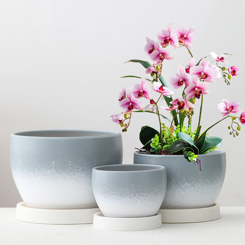 Pot de fleurs en céramique pour tulipes, plumerias et succulentes - Grande taille haut de gamme avec plateau - Offre spéciale liquidation