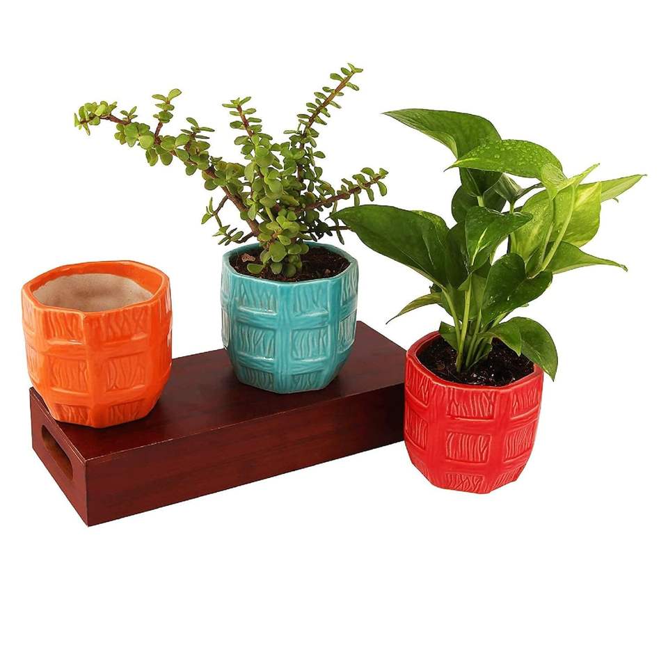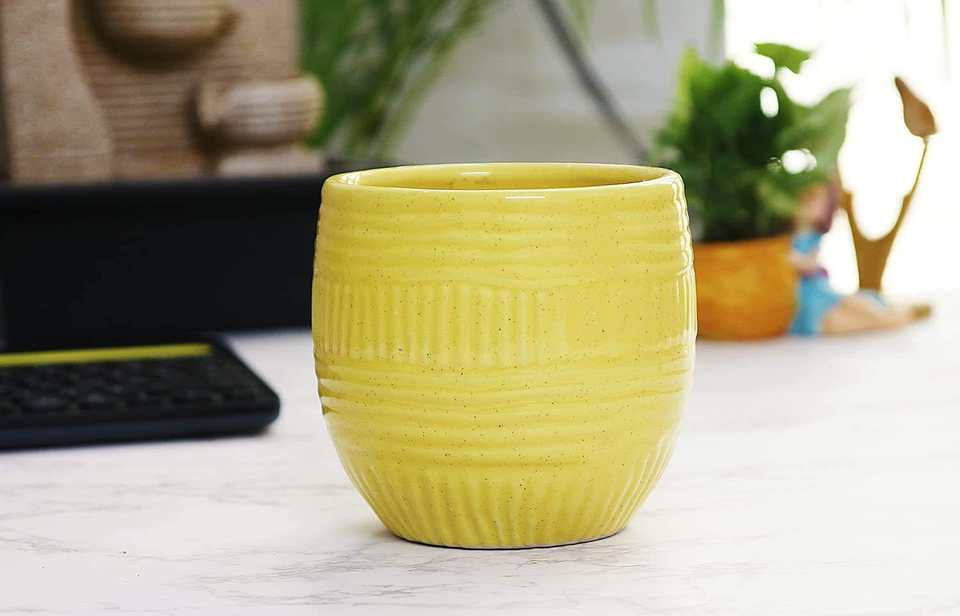 Pot de fleurs en céramique avec des lignes décoratives auto-définies, jardinière décorative pour l'intérieur et l'extérieur