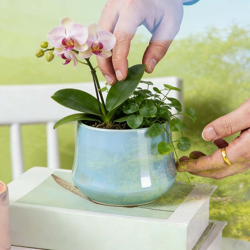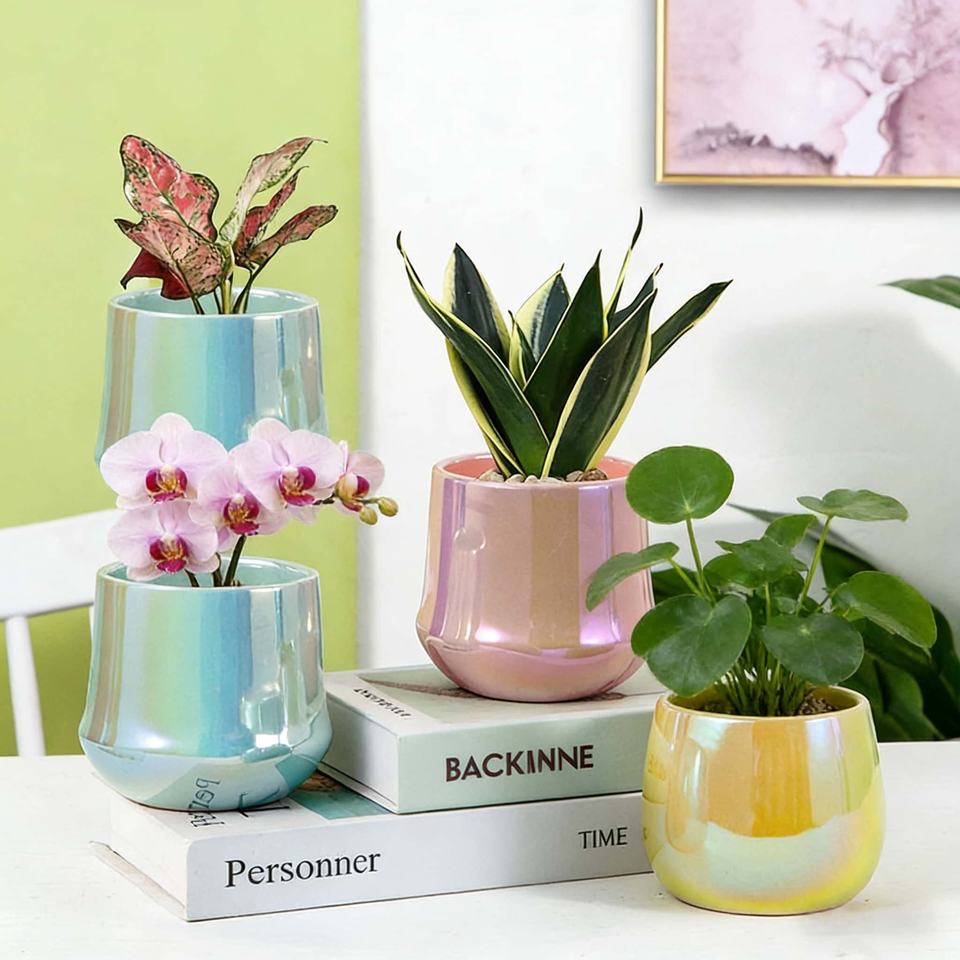 Ceramic Glazed Succulent Planter Minimalist Creative Nordic Style Eco-Friendly Durable Indoor Use Featuring Iridescent