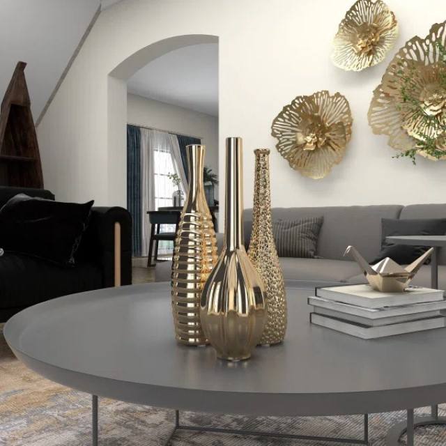 Vase en grès doré en céramique Vases de table décoratifs Accents de décoration intérieure moderne pour cheminée de pièce maîtresse de salon