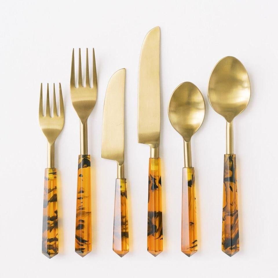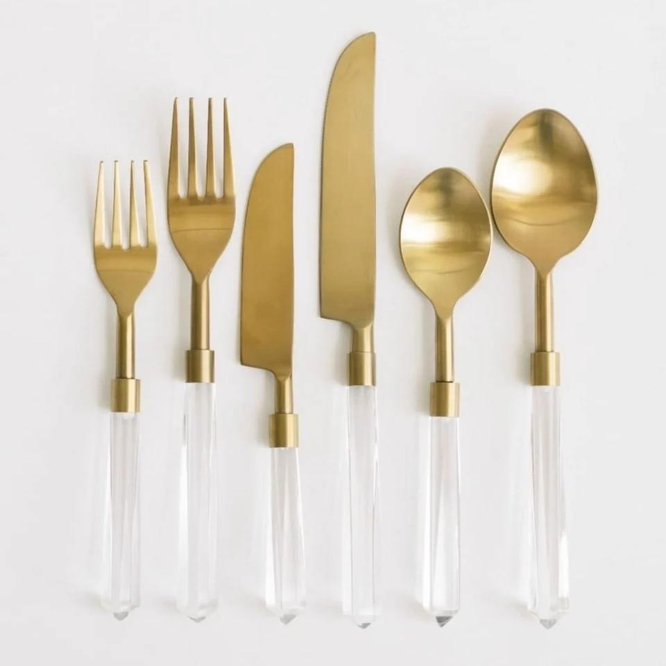 Ensemble de couverts en acier inoxydable poli or avec manches en céramique et résine, élégants pour mariages et dîners de luxe