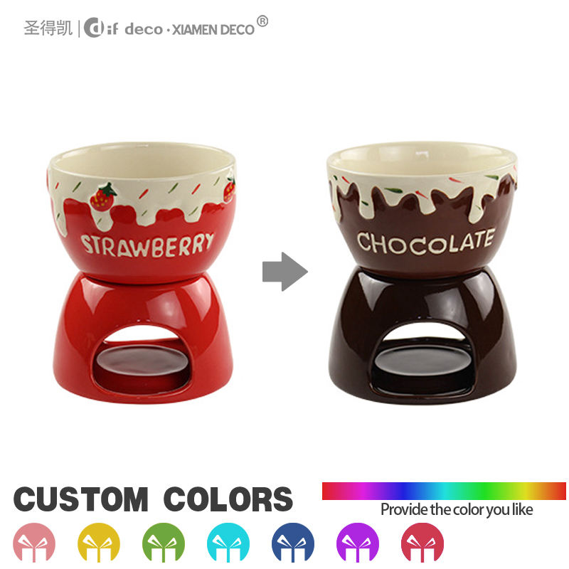 Ensemble de fondue au chocolat chauffant à l'alcool avec logo personnalisé en céramique à la fraise