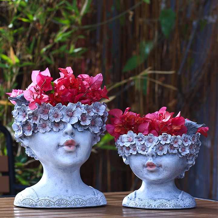 Pot de fleurs en céramique avec fibre de verre, grande couverture métallique et plastique,