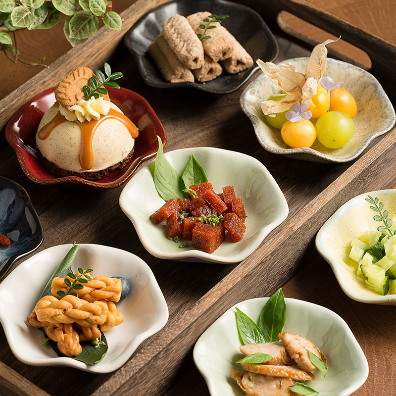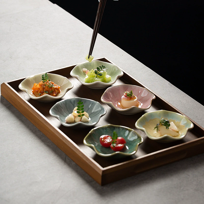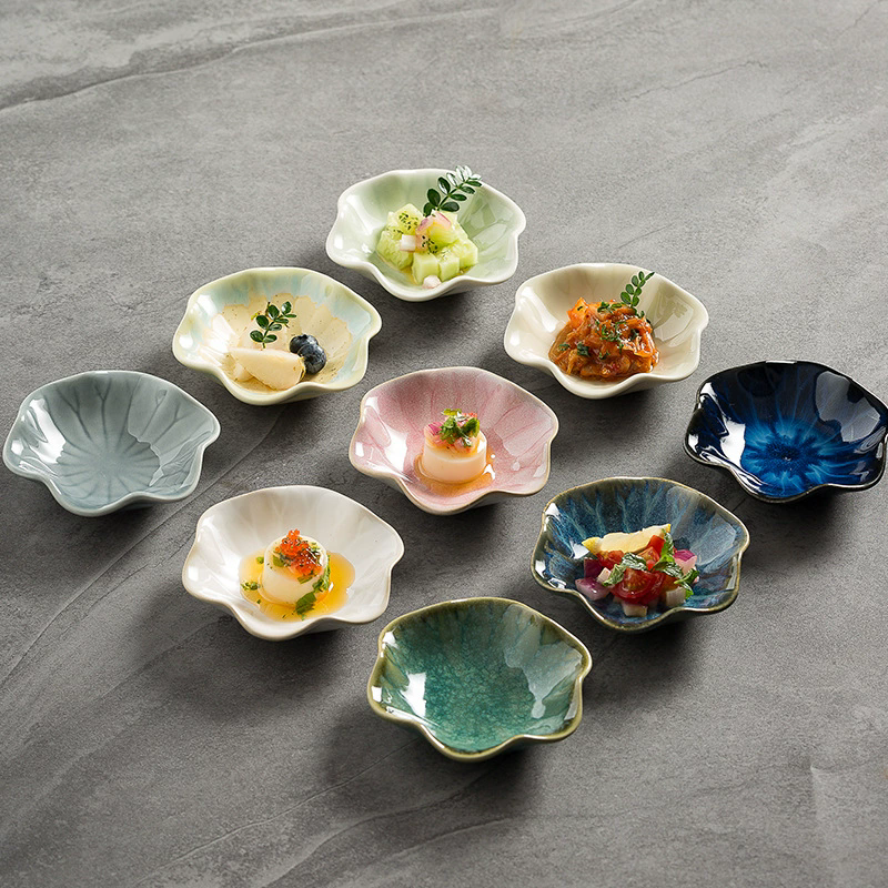 Nom du produit:Mini-assiette à dessert en forme de fleur petits plats en céramique