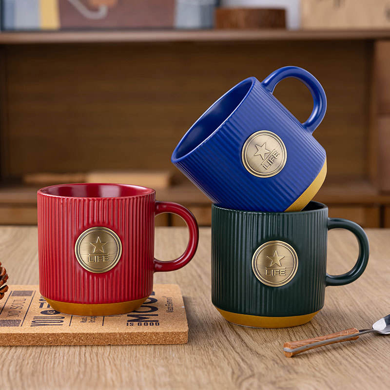 Tasse en céramique plaquée or 380ml, couleur unie avec poignée, résistance aux hautes températures, pour café, thé, cadeau