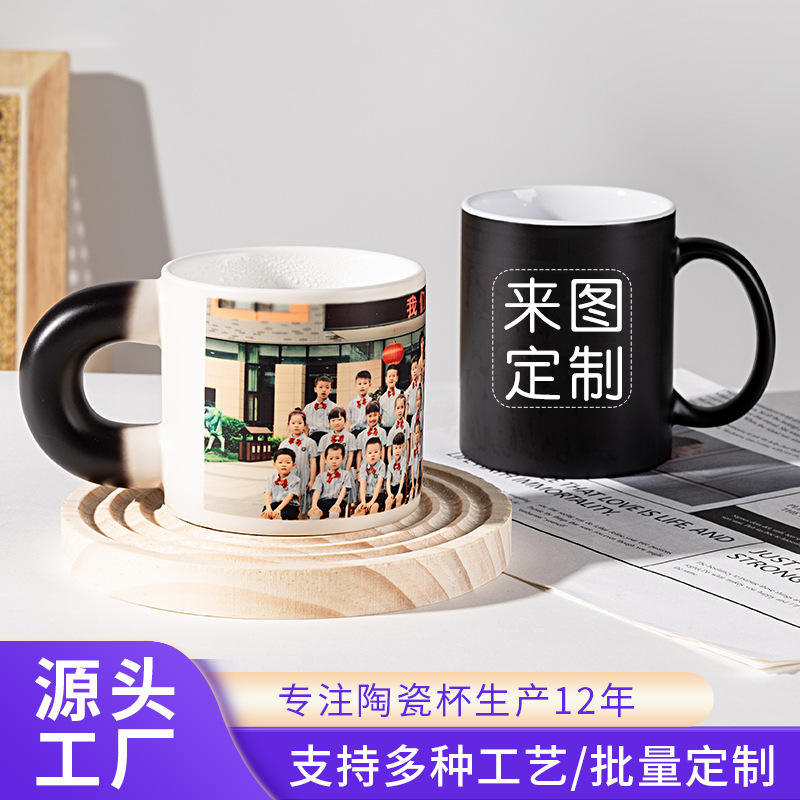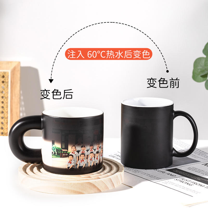 Mug en céramique noir changeant de couleur avec de l'eau chaude, impression photo personnalisée, tasse individuelle pour cadeaux
