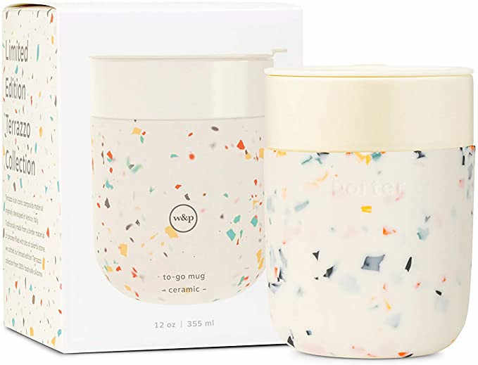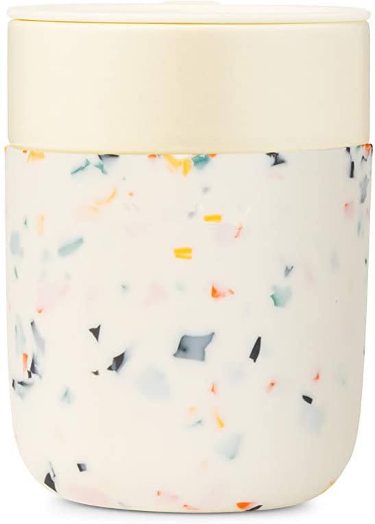 Tasse en céramique avec manchon de protection en Silicone, charbon de Terrazzo 12 onces | On-the-Go | Tasse réutilisable pour café ou thé