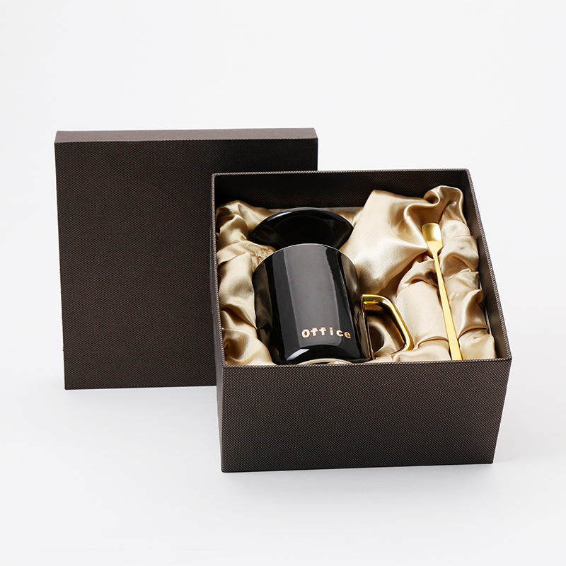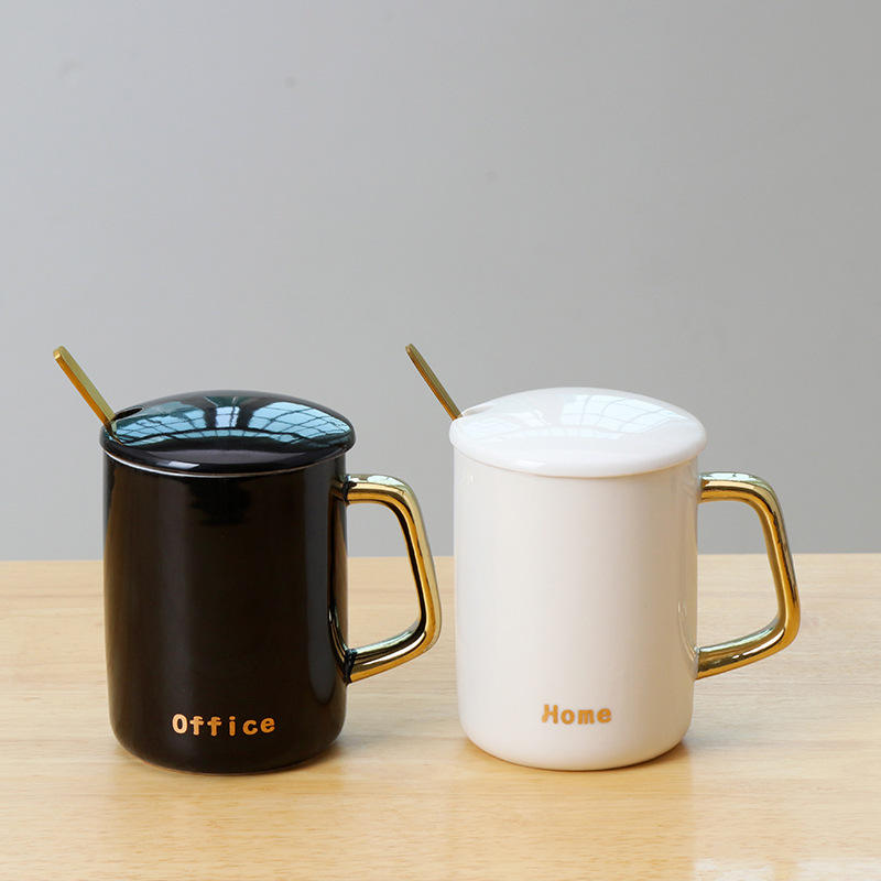Ensemble de tasses à café en céramique avec anse et couvercle dorés pour le bureau ou la maison