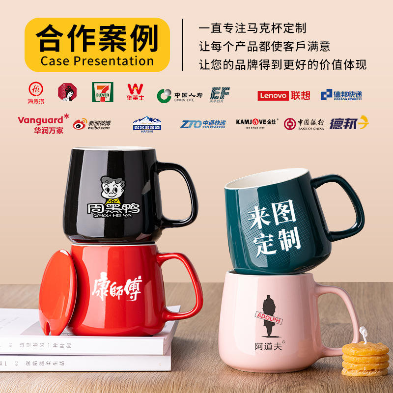 Mug en céramique avec couvercle et cuillère, tasse à café imprimée pour couple, personnalisation de cadeau