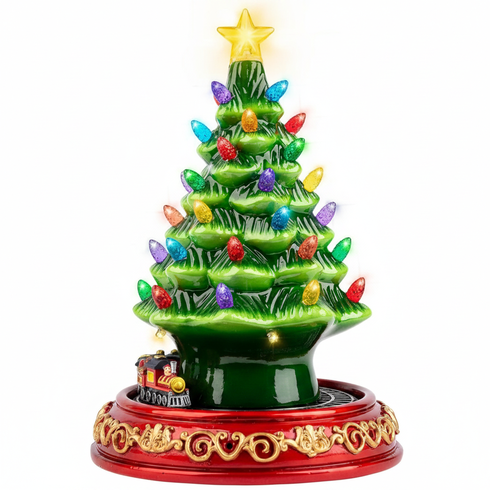 Décorations de Noël en céramique, train rotatif avec 38 lumières multicolores pour la table de Noël à la maison, train de Noël 38