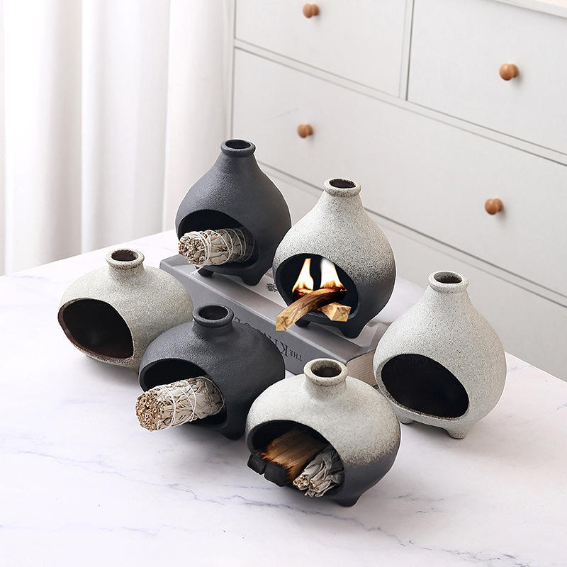 Mini-brûleur d'aromathérapie en céramique à flamme nue, design cheminée de table sur trépied, petit brûleur chauffe-mains d'hiver, Sauge