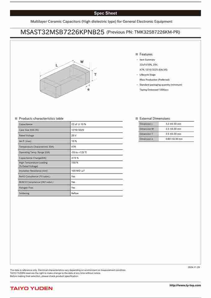 MSAST32MSB7226KPNB25 / TMK325B7226KM-PRNuméro de Type