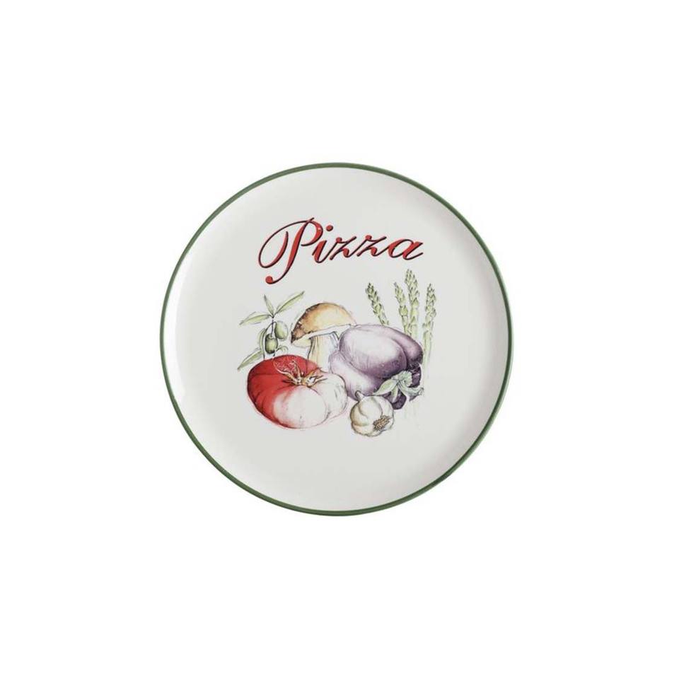 Assiette à pizza en céramique 32 cm avec motif champignons, tomates et ail