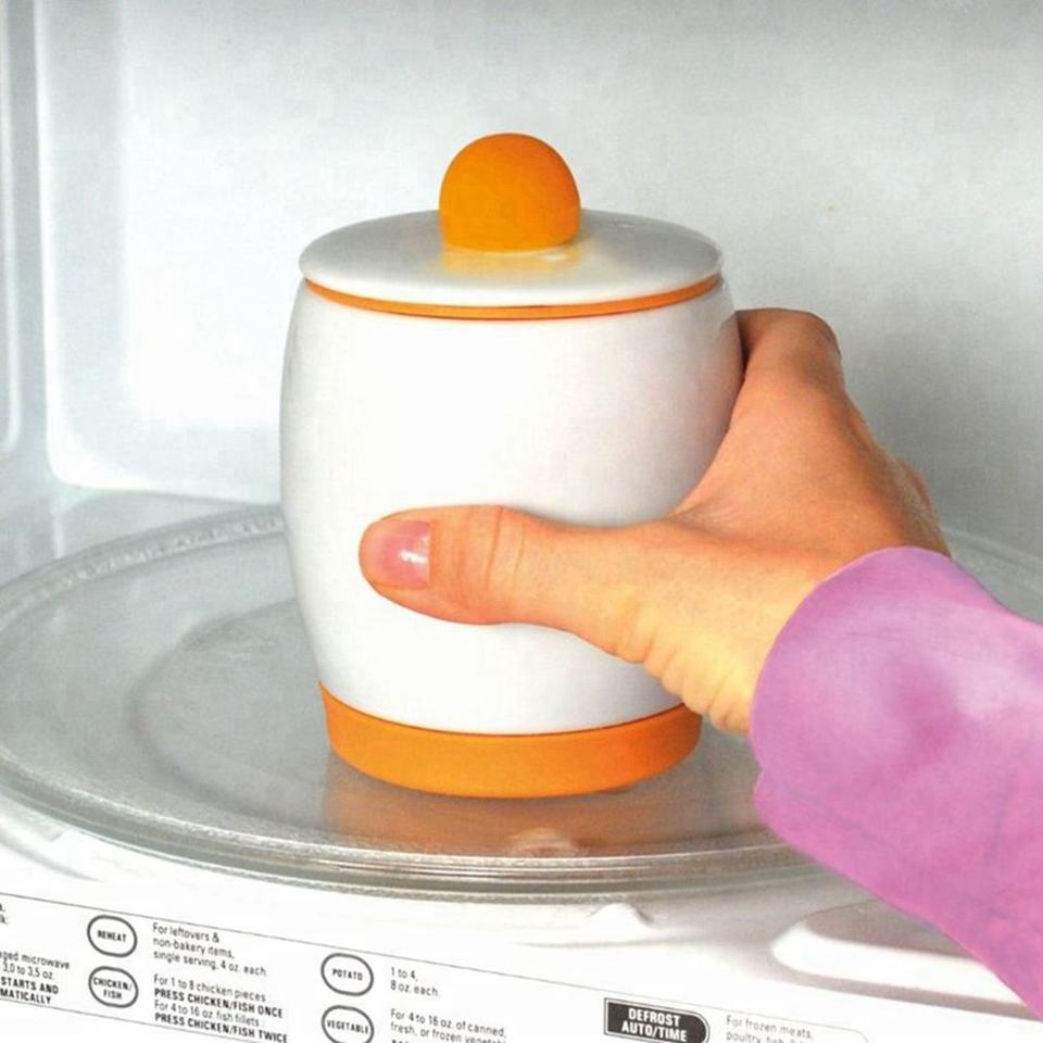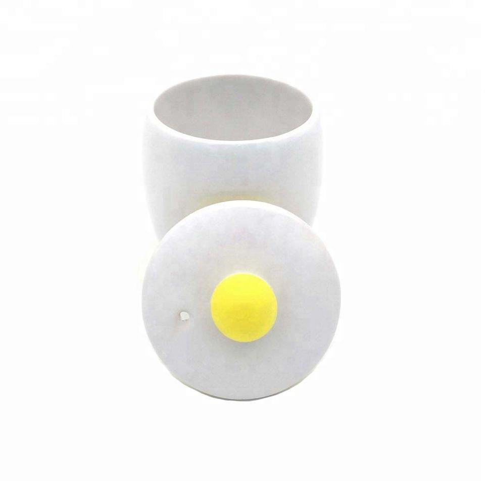 Ceramic Poacher White Orange Microwave Egg Cooking Jar Rapid Ceramic Egg Cooker with Lid