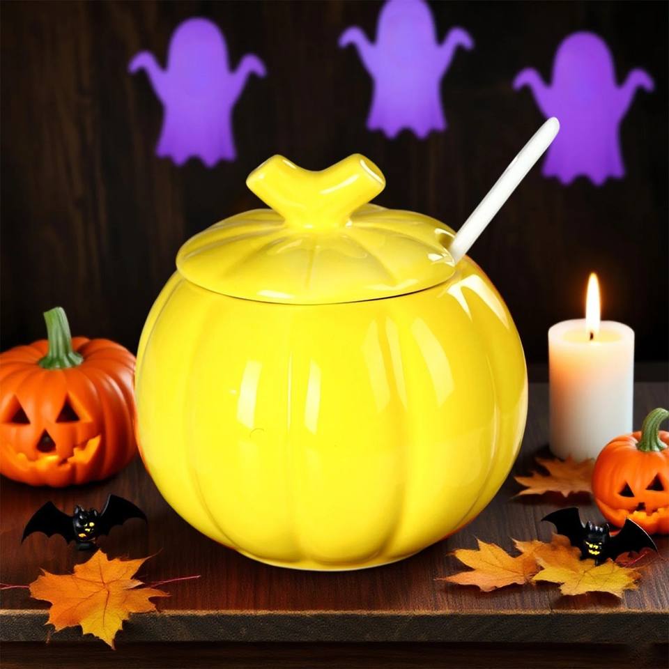 Pot de rangement en céramique en forme de citrouille avec couvercle et cuillère, récipient hermétique pour aliments, organisateur de cuisine décoratif, décoration festive d'Halloween