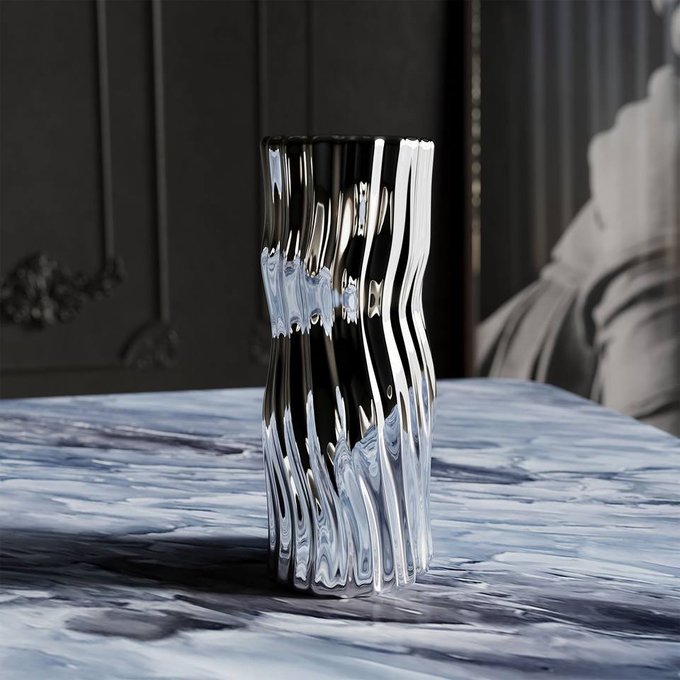 Ceramic Silver Contemporary Tabletop Water Vase 28cm
