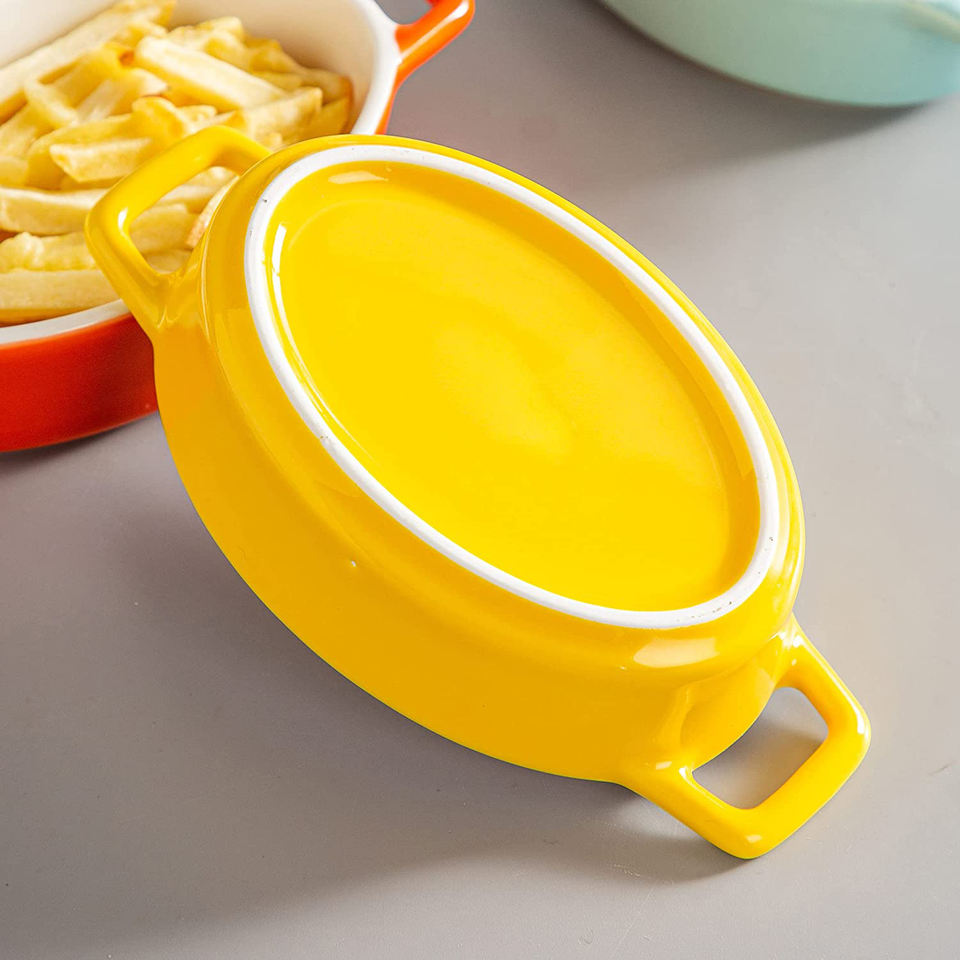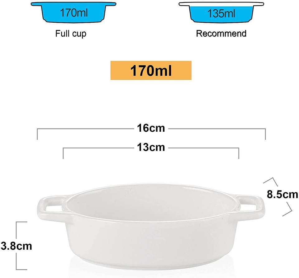 Plat à soufflé en céramique 6 oz crème brûlée ramequins ovales à double poignée allant au four pour la cuisson, la crème glacée, les tartes au poulet