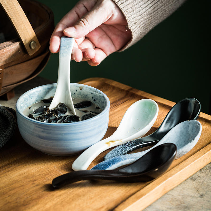 Cuillère à soupe en céramique, style japonais, design classique, vaisselle de cuisine domestique, cuillères polyvalentes pour riz et bouillie