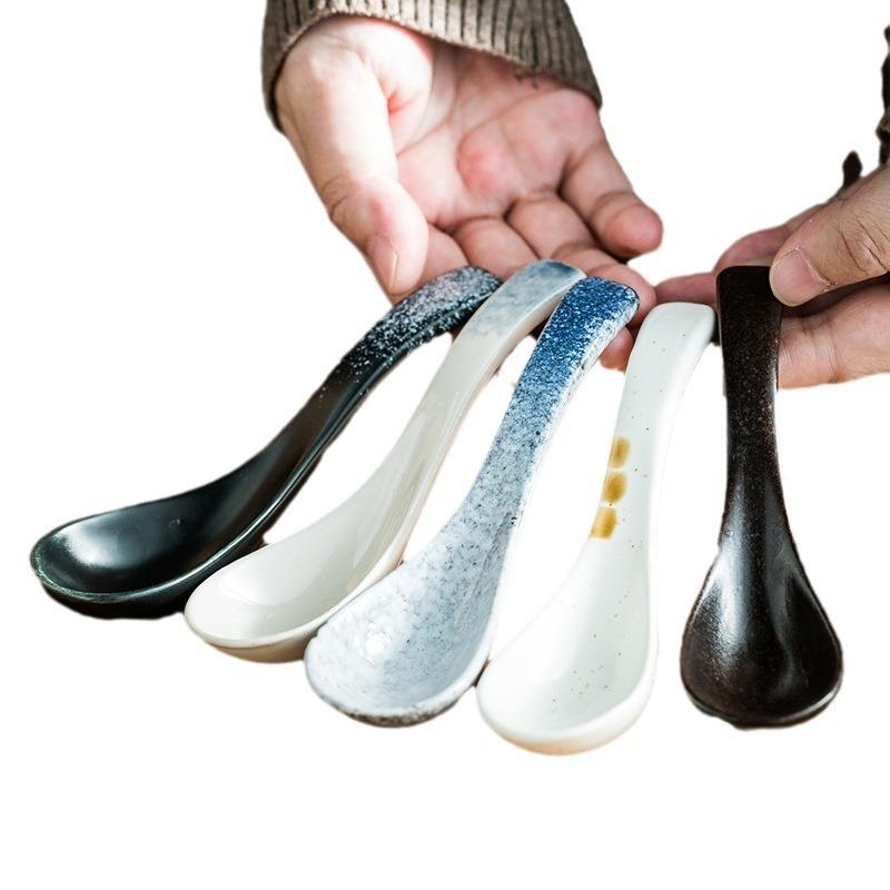 Cuillère à soupe en céramique Vaisselle japonaise Cuillère à manger Cuillères créatives à long manche Ustensile de cuisine Outil Cuillère à café