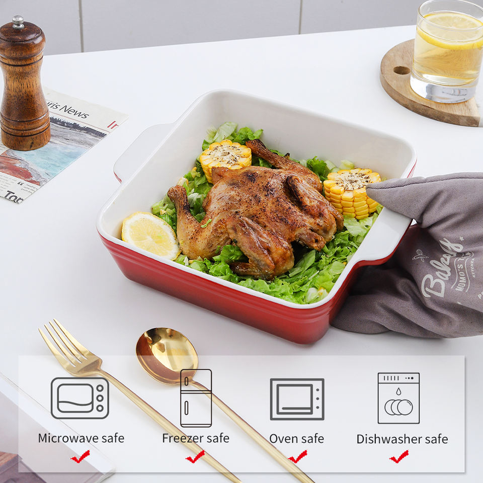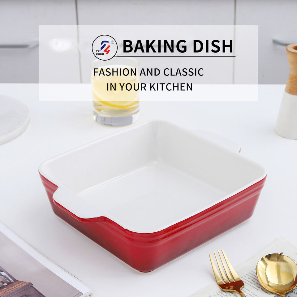 Plat de cuisson carré en céramique avec poignée Ustensiles de cuisine écologiques pour nouilles au fromage et cuisson