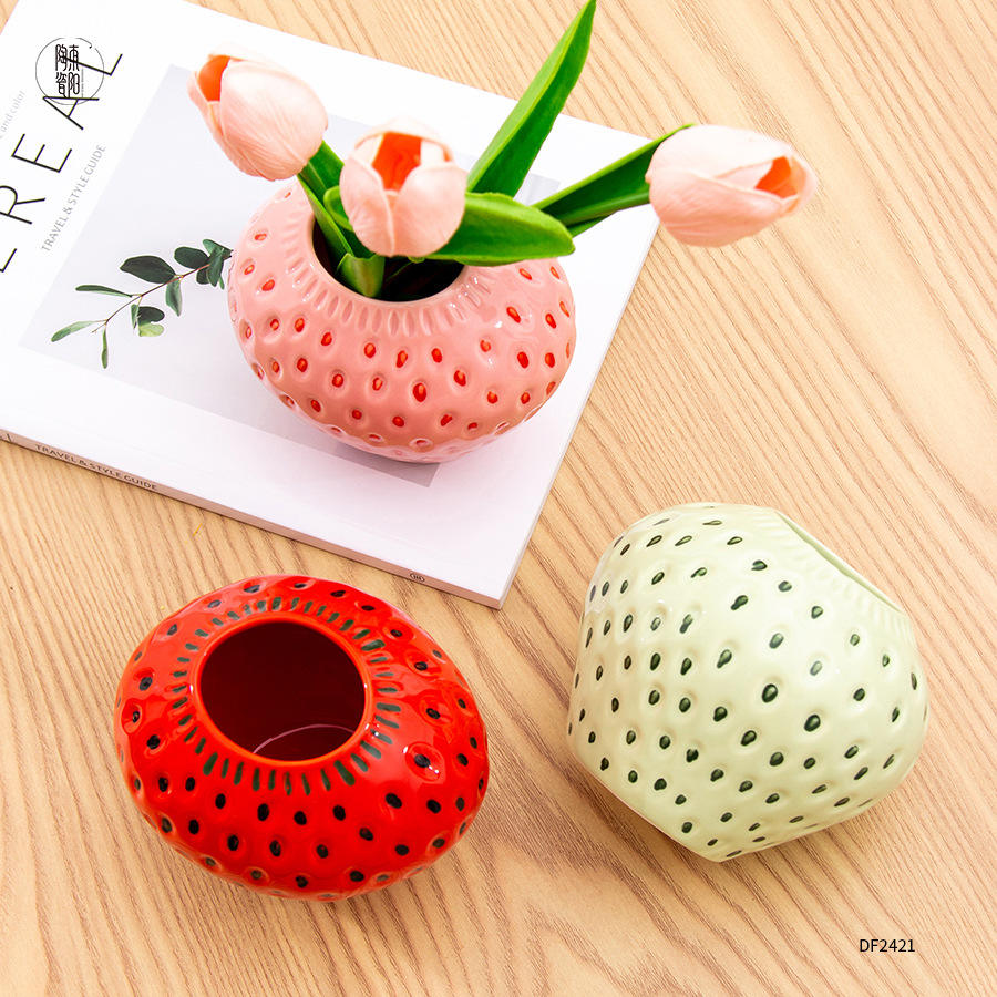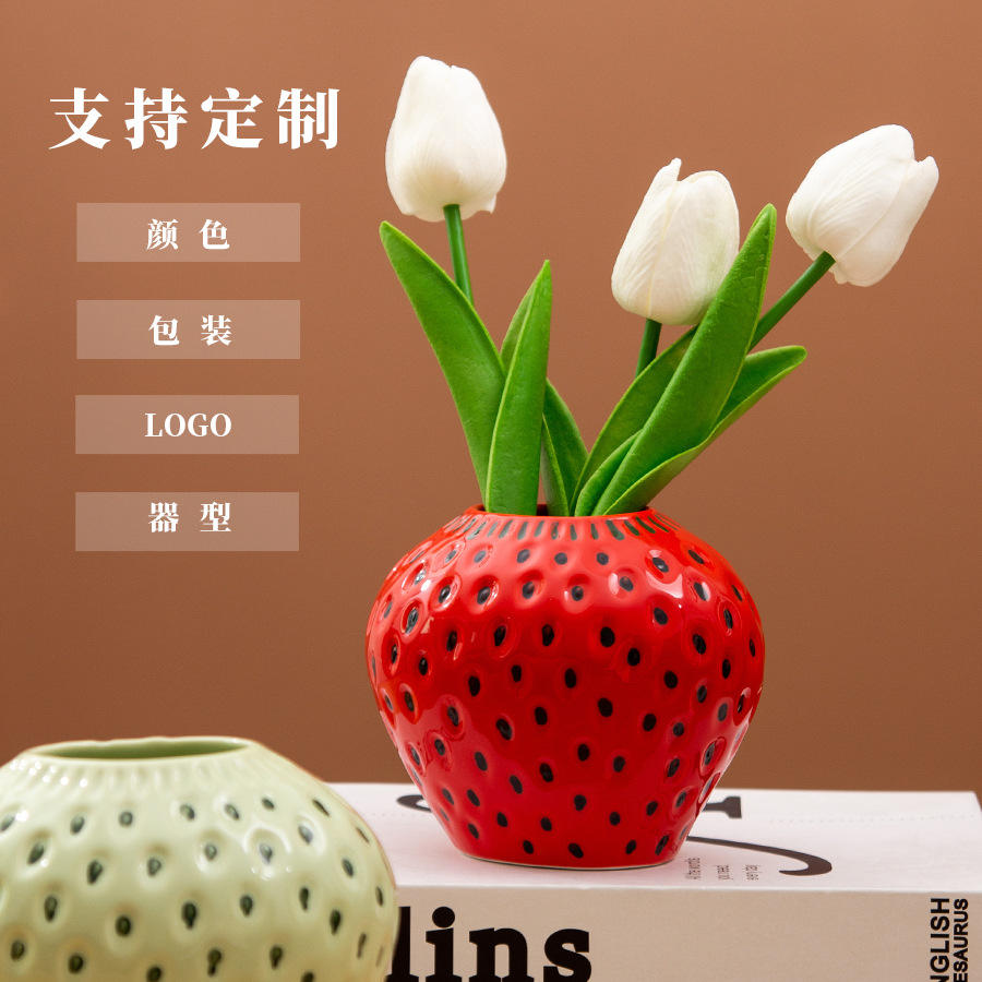Vase en céramique rose avec arrangement de tulipes, décoration de table pour la maison, cadeau DF2421
