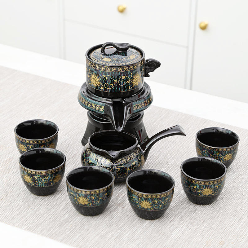 Service à thé en céramique noir, moulin à pierres porte-bonheur automatique, résistant à la chaleur, coffret cadeau pour la maison
